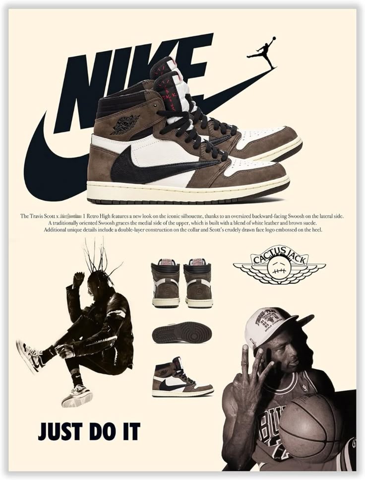 The Air Jordan 1 Travis Scott features a white leather upper with Mocha suede overlays and black leather reversed Swooshes. Hits of red on the tongue slightly contrast the design's earth tones. On the heel, a debossed Cactus Jack logo adds a custom feel. From there, a yellowed midsole and matching Mocha outsole complete the design.
